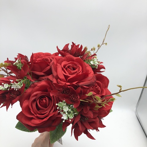 K-0058 10 teste di porcellana fiore artificiale all'ingrosso panno di velluto elegante multicolore bouquet di Rose artificiali bordeaux Rose